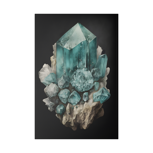 Dark Aquamarine Canvas Print - Crystal Art for Home or Office - Apothecary Decor