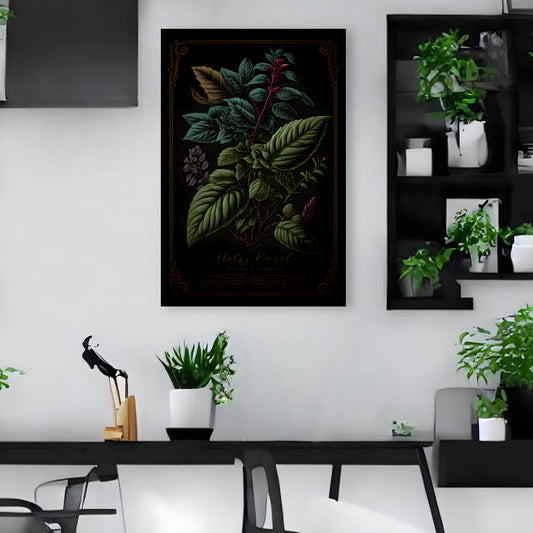Dark Holy Basil Canvas Print - Herbal Art for Home or Office - Apothecary Decor