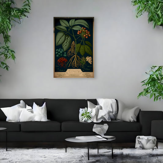 Dark Ginseng Canvas Print - Herbal Art for Home or Office - Apothecary Decor