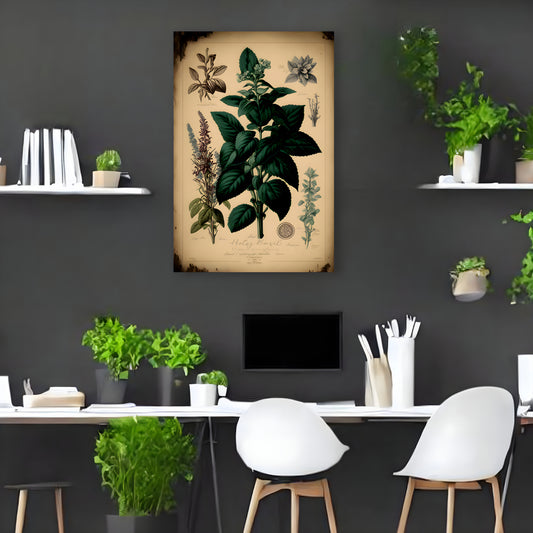 Light Holy Basil Canvas Print - Herbal Art for Home or Office - Apothecary Decor