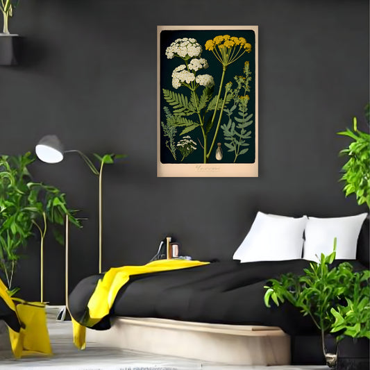 Dark Yarrow Canvas Print - Herbal Art for Home or Office - Apothecary Decor