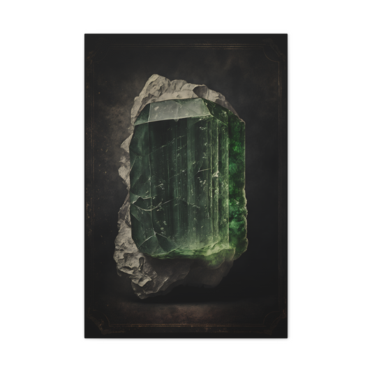 Dark Green Tourmaline Canvas Print - Crystal Art for Home or Office - Apothecary Decor