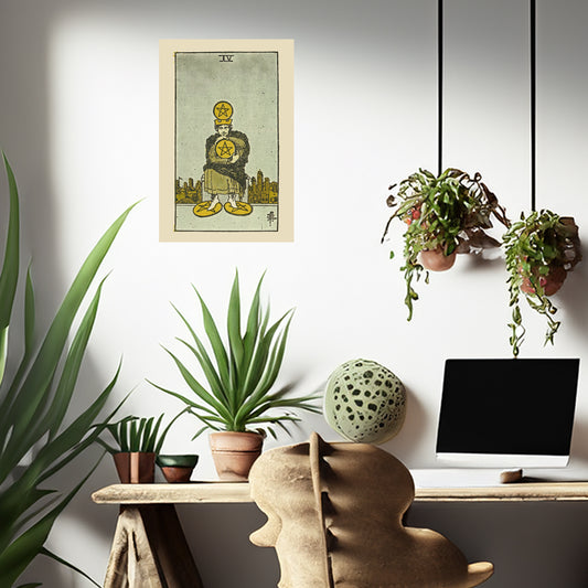 Four Of Pentacles Canvas Print - Tarot Card Art for Home or Office - Apothecary Decor